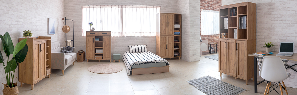 家具的百搭性对于小坪数来说,尤为重要,不同收纳规格的量体,延续同一种格调时,大区域可选择大量体、或多件堆叠,小区域则应用低矮量体呈现风格的精致度,就能为小资族、租屋族、小家庭形塑出合乎完美居家的百变收纳,提升居住品质。