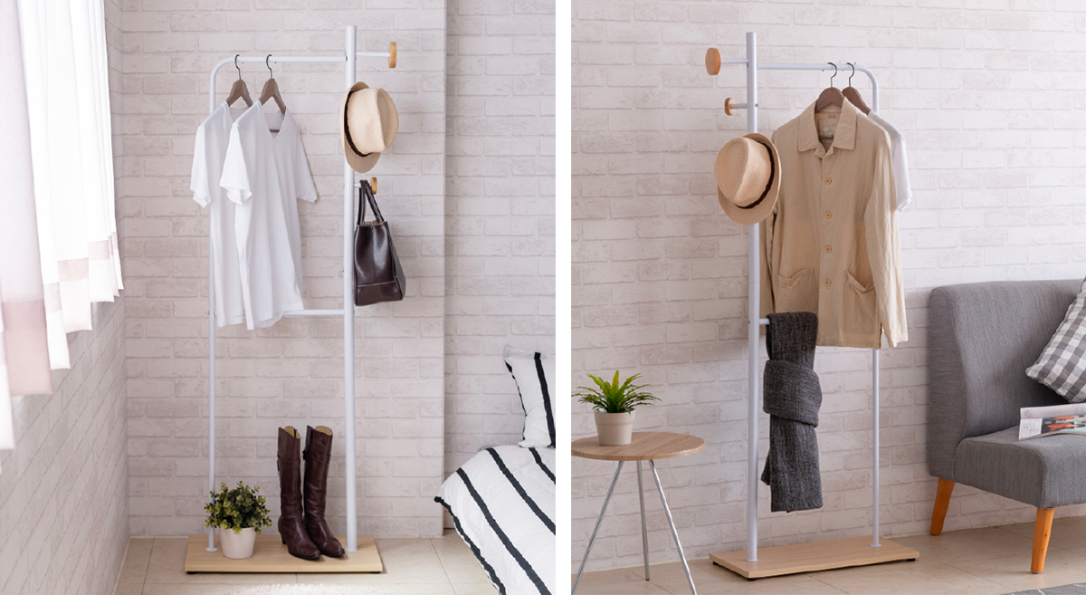 家的轮廓一旦有了主要元素贯穿之后,再利用小物件突显出人味,则能在居住品质上,轻巧地带出屋主的品味,全新上架的藤野造型衣架正因其俐落的线条、充满当代风貌的直觉式特色、简约的黑白烤漆铁件与木质相衬。